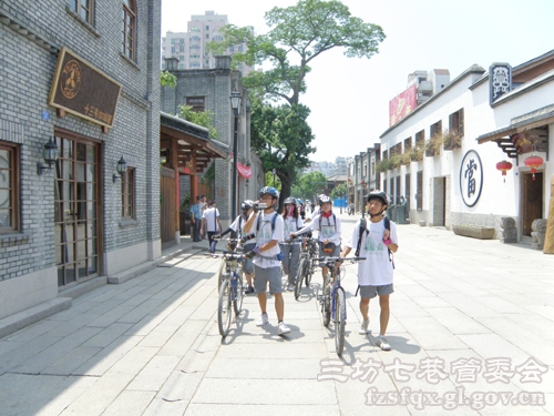 厦门大学骑行在三坊七巷进行环保文化宣传