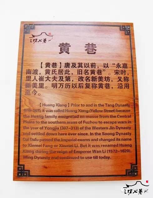 黄巷是因为晋永嘉年间(307~312年)“永嘉之乱,八姓入闽”,中原的衣冠士族黄姓一支避乱到福建,落户此巷而得名。