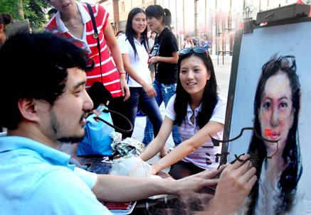 在大家看来,用“粉笔”作画是件挺新鲜的事情,因此每次林伟作画,都会吸引非常多的游人观看。林伟告诉记者,这一个多月以来,每个周末,他都会到南后街来摆摊作画,可能是大家对色粉画还不是很了解,询问的游人很多,但是真正坐下来让他画的人不多。不过,第一次摆摊,林伟就遇到了知音。“第一次帮那位女士画,她就很满意,觉得‘粉笔’可以这么真实地表现她的样子很不可思议。”林伟说,接下来的三周,那位女士都会过来让他帮她画一幅肖像。通过不断的沟通交流,林伟加深了对她的了解,不仅画出了这位女士的样子,更画出了神韵。两个人也因此成为无话不谈的好友。