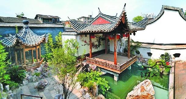 记者游记:水榭戏台宅院之大,会让你在里面转“晕”,找不到原先的入口。进入宅院大门,看到一个门厅,左右各有一个耳房。再进石框大门,看到三面环廊,中有天井。再往里是个厅堂,面阔三间、进深七柱,大厅特大。第二进、三进都是面阔三间、进深五柱,每进东侧都有小门可通到第二座别院。走进别院,还有书斋、佛堂、厨房、饭厅、库房等。再往东,又有小门通第三座花厅深五柱,每进东侧都有小门可通到第二座别院。走进别院,还有书斋、佛堂、厨房、饭厅、库房等。再往东,又有小门通第三座花厅园林。著名的水榭戏台就在这里了,旧时是府内聚会、演戏的地方。
