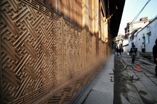 故居沿巷门板的底部,是一整排竹条编成的竹墙。工作人员表示,郭柏荫故居在国庆期间曾开放过,后又进行修复,这道竹墙就是其中一道工序。“三坊七巷的很多建筑,都会出现这种工艺,以前人们就是通过这个防止开关门时对门造成损坏。”工作人员说,竹墙上看似不规则的图案中有不少“卍”字,“这在以前也是希望能讨个吉利”。