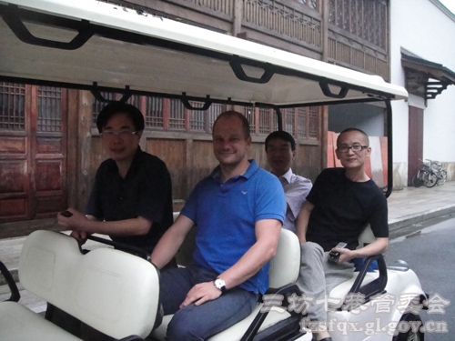7月28日上午,容宝古董家具第三代传人Jan Rombouts一行赴三坊七巷管委会商谈古董家具展出事宜,管委会主任林飞、常务副主任、总经理林矗热情的接待了他们。席间,Jan Rombouts对福州的氛围很满意,感叹比北京都好,几个随行的台湾人也表示希望能够来三坊七巷办展。随后他们到三坊七巷林则徐纪念馆、林聪彝故居等地进行参观。在参观过程中,Jan Rombouts表示:“政府拿这么多钱出来进行修护,很有意义,在中国来说没有几例;故居建筑文物保护的这么完整也着实让我大吃一惊。”