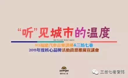 12月26日,913汽车音乐调频&三坊七巷2015年度核心品牌活动资源推广宣讲会暨 “听”见城市的温度—大型装置艺术展将在南后街75号展馆盛大举行!当天除913三大岁末文创产品首发外,委任半城电影拍摄的2015年度频率概念片《听》也将全新面世。前日,该片的拍摄工作已经启动。