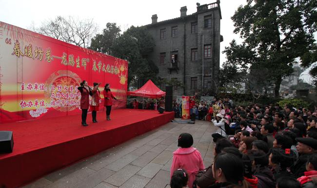 1月27日下午,三坊七巷光禄吟台的“福州民间春晚”吸引了众多游客驻足观看。福州的喜娘、闽剧和福州话歌曲等都轮番登台亮相。现场工作人员说,多数中国人已经习惯了大年三十看央视春晚,但真正民间的东西很难登上央视的舞台。我们搞民间春晚,就是想让老百姓欣赏到原汁原味的非物质文化遗产。