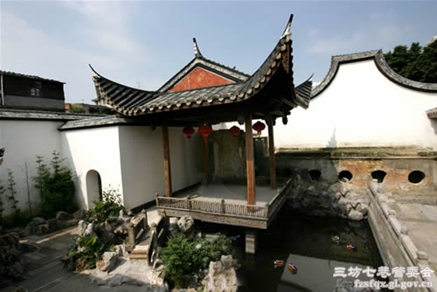 修复后的水榭戏台保留有假山、雪洞、云洞、水池、谯楼等建筑,是福州城区内硕果仅存的民居古戏台。而今,水榭戏台戏台又多了几只小动物:国家二级保护动物--鸳鸯。据三坊七巷有关工作人员介绍,这两对鸳鸯是刚从杭州胡雪岩故居千里迢迢带回来的。今后将放在水榭戏台里的水池里供游客欣赏。来三坊七巷的游客不妨到水榭戏台逛一逛,现在这里即可以欣赏到民乐演出,还可以看到鸳鸯戏水,相互追逐嬉戏的景观。