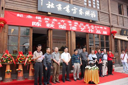 由闽江学院美术学院、东京艺术大学漆艺研究室、福建省漆艺研究会主办的“纪念福州东方书画社成立30周年系列活动--陈秋荣漆艺作品展”19日上午在南后街福州东方书画社开幕,40多件漆画与漆器作品完美展现了漆艺这一福州国家级非物质文化遗产的风采。