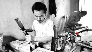一块巴掌大的三角形杉木块,在数把不同模样的刻刀下转来转去,“变”出了“花开富贵”的雕花小件。昨日上午,记者在福州三坊七巷安民巷鄢家花厅对面的宅院内,见到了“下刀如有神”的木雕工人。