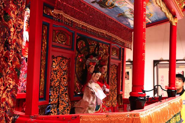 非物质遗产里上艺术家们表演了柘荣布袋戏等节目让游客一饱眼福。