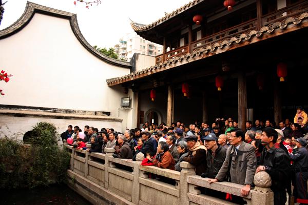当天上午,在水榭戏台上演精彩的闽剧名角专场演出,闽剧名角和票友戏迷们在这古色古香的传统戏台上共度元旦佳节。