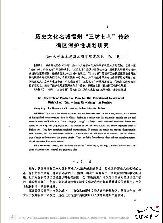 历史文化名城福州_三坊七巷_传统街区保护性规划研究