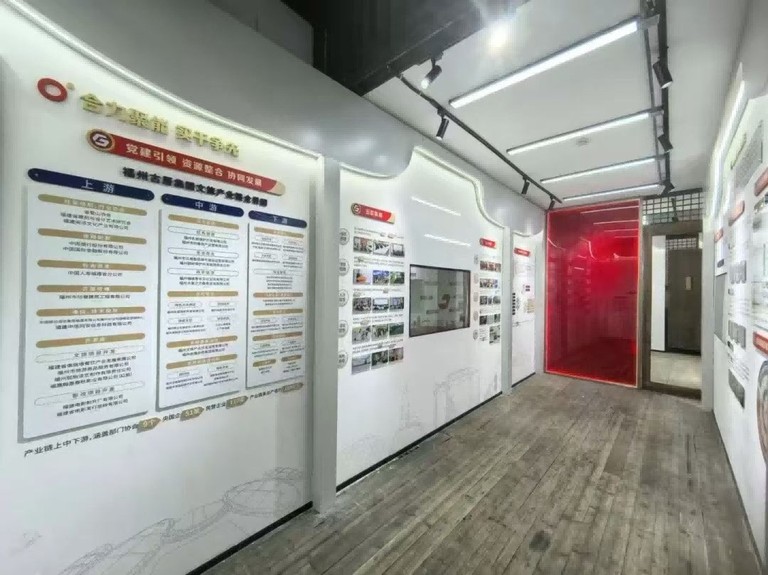 场馆介绍:为推动文旅商深度融合,打造具有福州特色的红色文旅示范样板,我们精心打造了文旅产业链企业共享空间。空间采用开放式布局,集中呈现链上企业发展成果,提供资源对接、提升文旅效益等全维度服务,更深度融合党建与文旅创新实践,为访客带来兼具专业价值与文化体验的互动场景,充分彰显街区商脉活力。